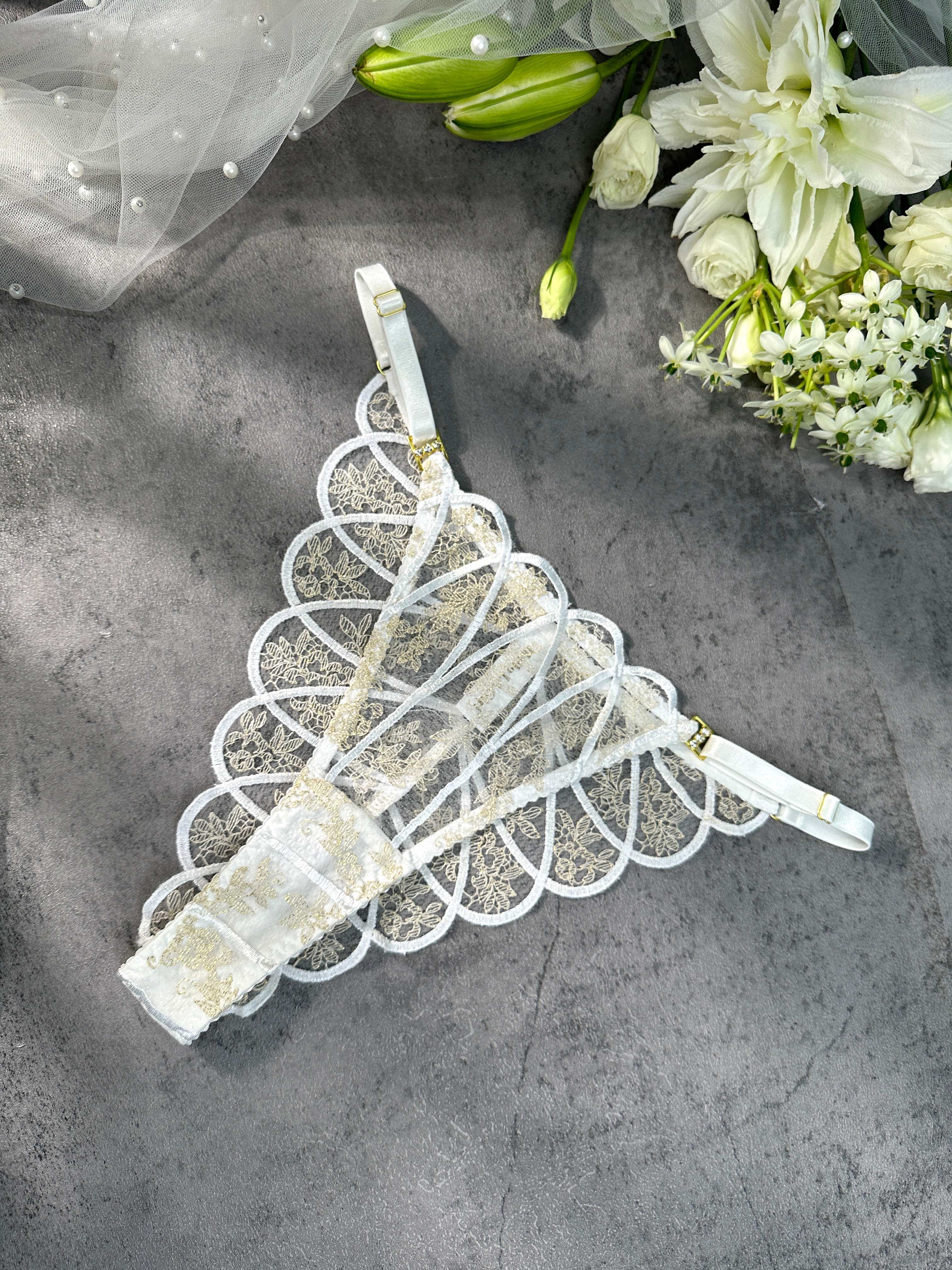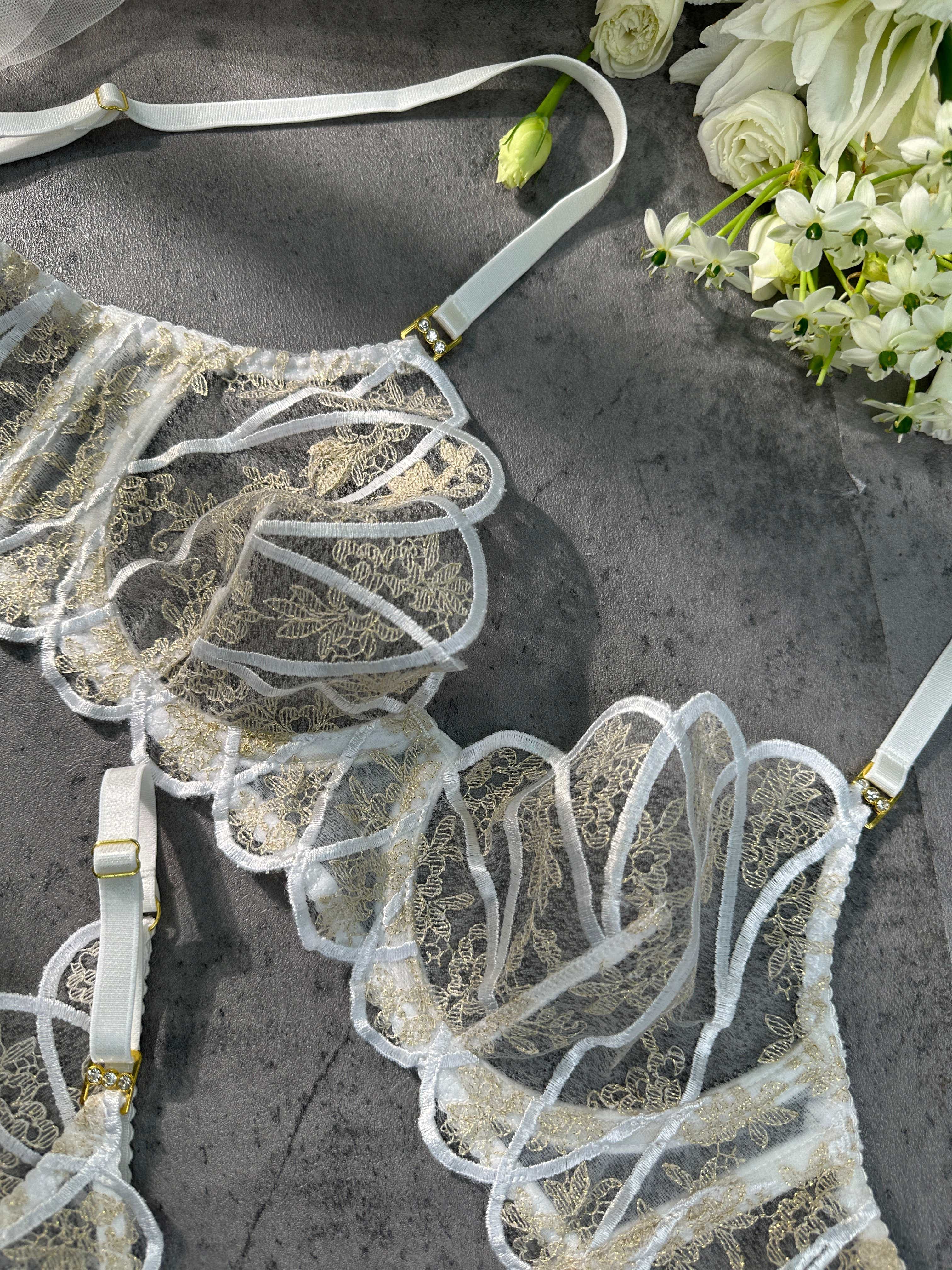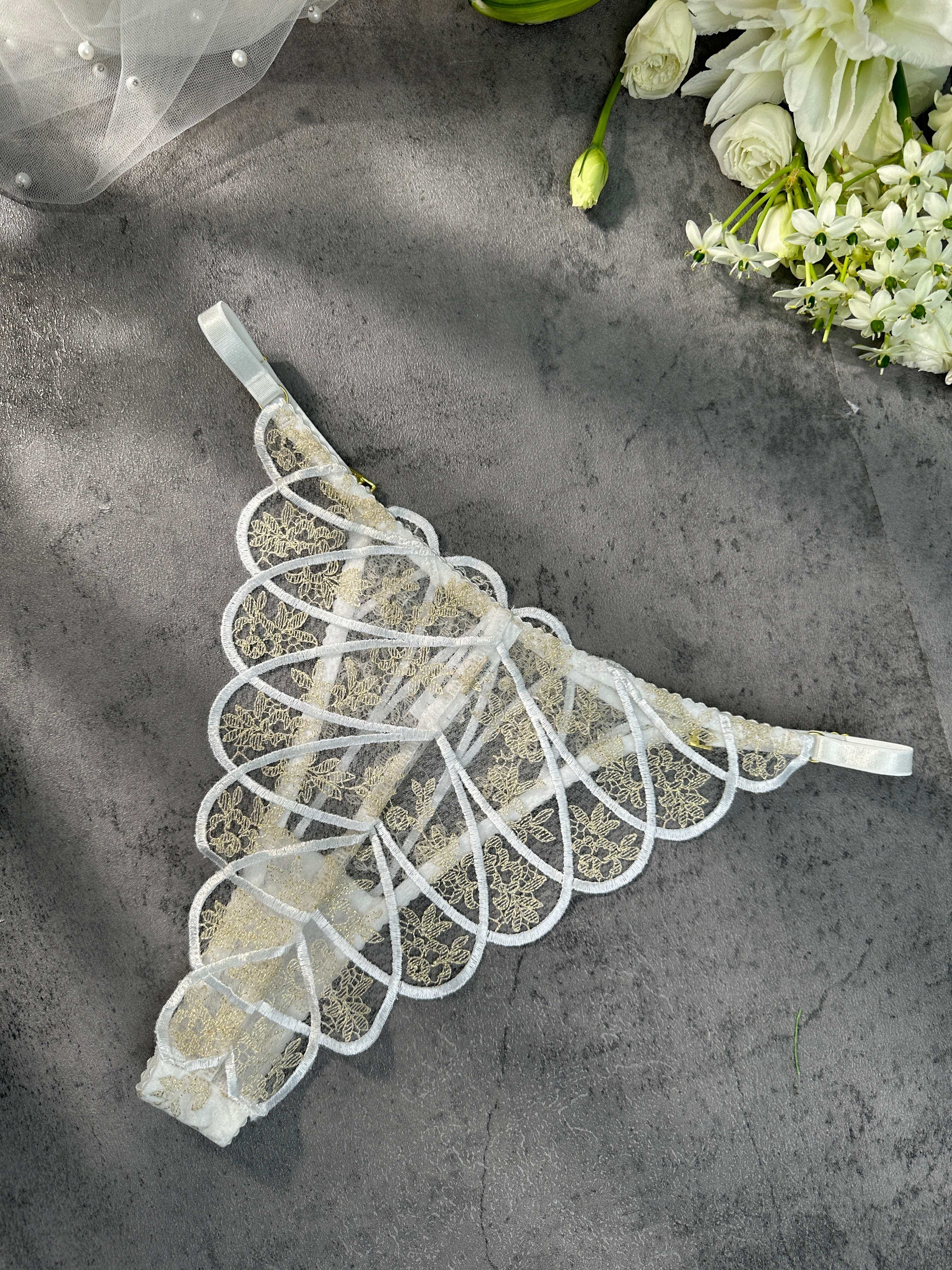 • Bridal Lingerie Set: Heavenly Glow Radiance Luxe White Satin with Golden Embroidery