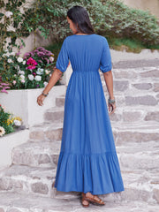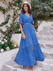 • V-Neck Short Sleeve Ruffle Hem Dress