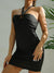 • Shiny Halter Neck Cutout Mini Dress