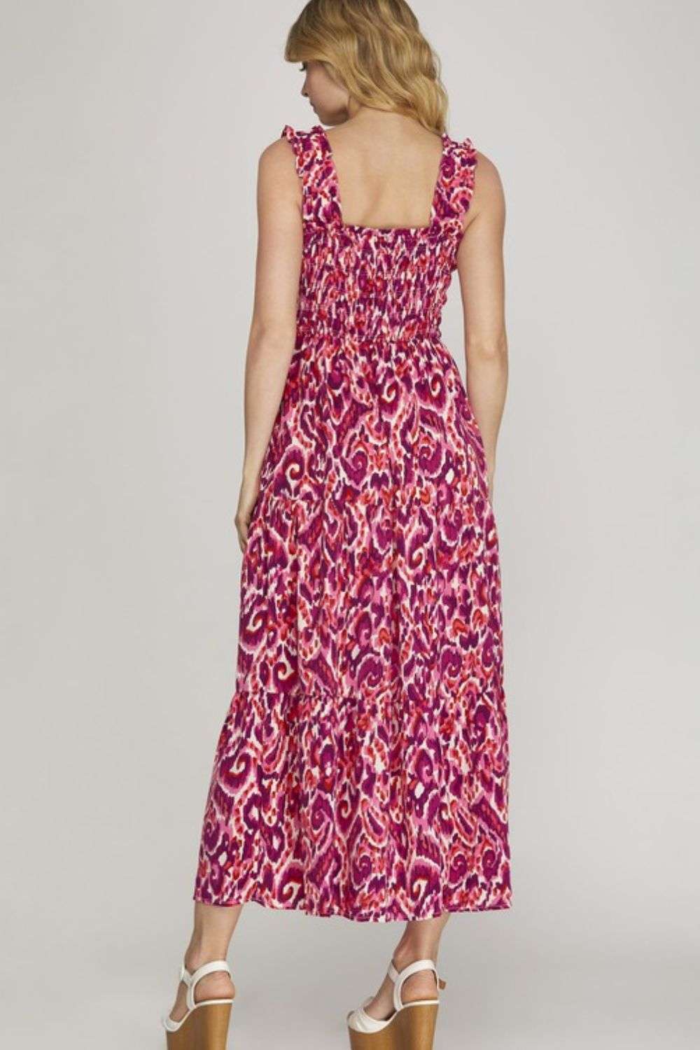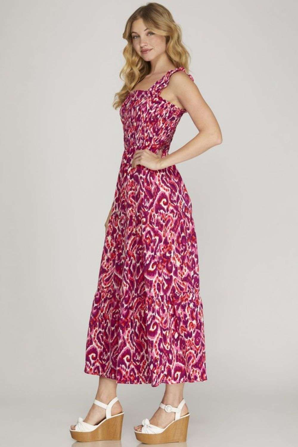 • She + Sky Full Size Smocked Printed Wide Strap Tiered Dress Plus Size