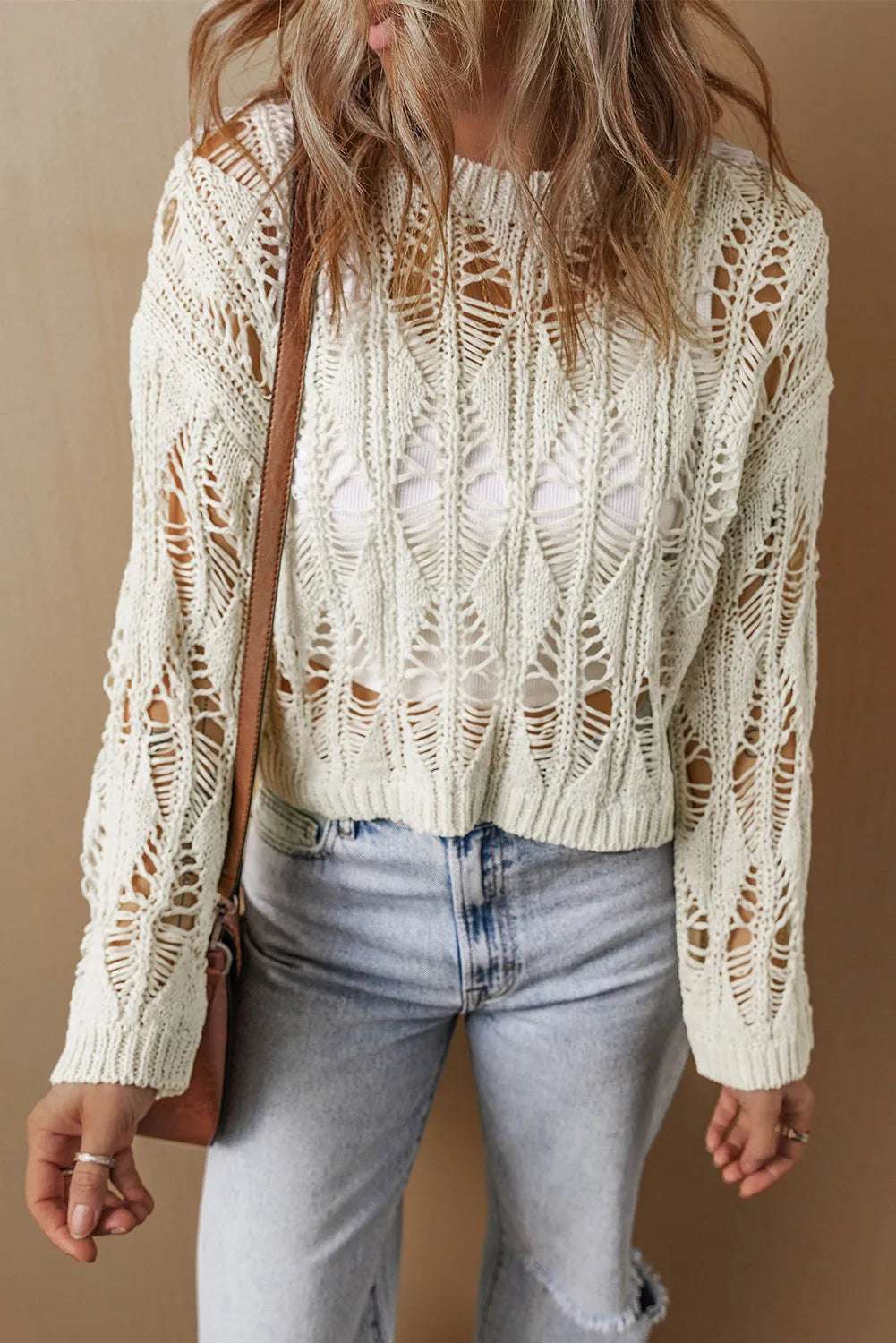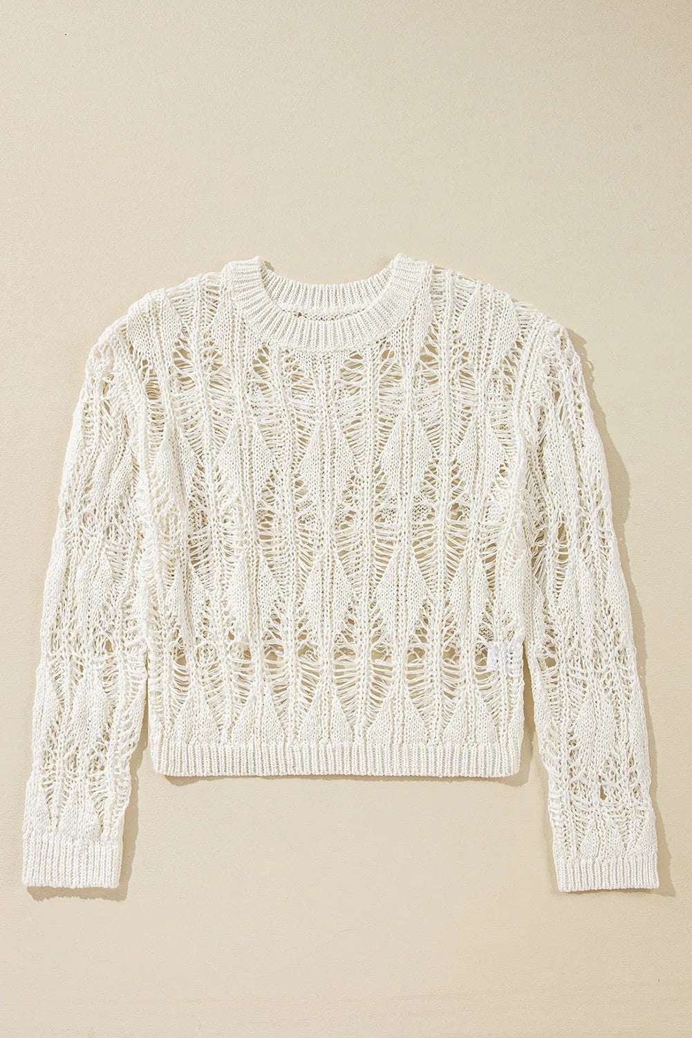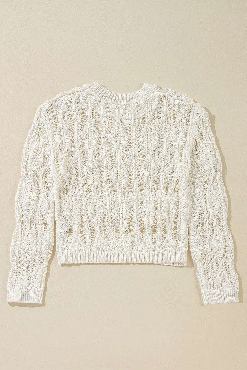 • Cutout Round Neck Long Sleeve Knit Cover Up