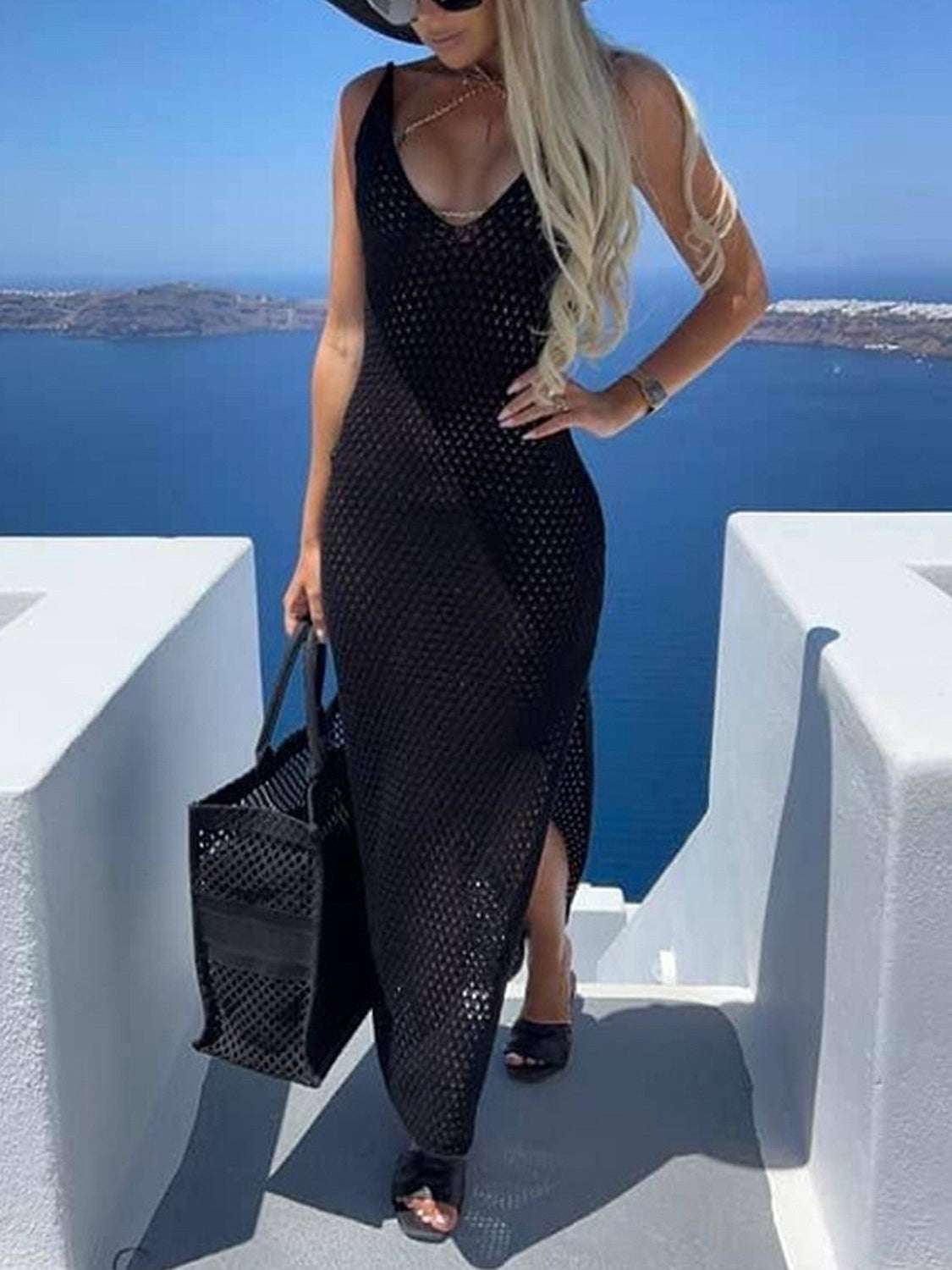 • Slit Openwork V-Neck Sleeveless Cover Up